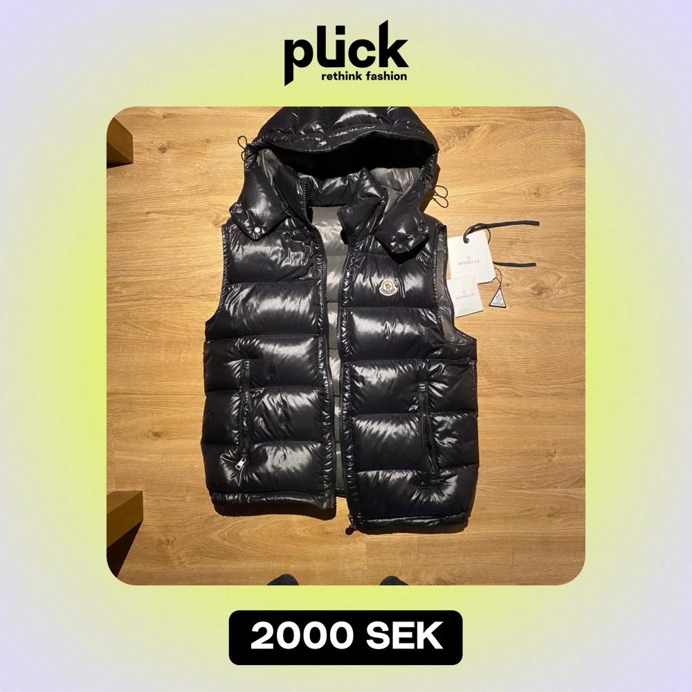 Säljer en snygg svart dunväst från Moncler i mycket bra skick. Västen har en quiltad design med dragkedja och en avtagbar huva. Perfekt för höst och vinter, håller dig varm och stilren. Storlek 5, vilket motsvarar herr XL. Passar både till vardags och festliga tillfällen.