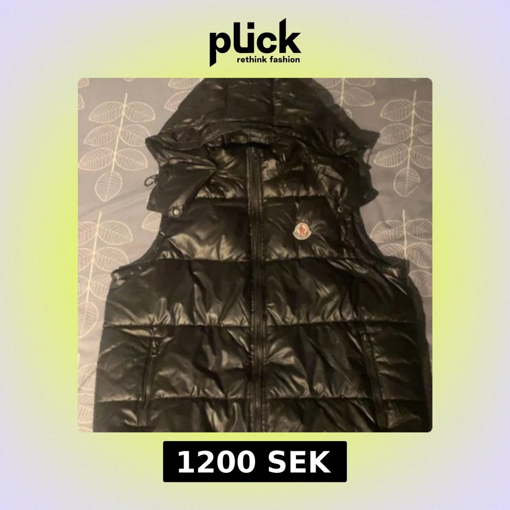 Säljer en svart dunväst från Moncler med huva och dragkedja framtill. Västen har Moncler-logga på bröstet och två fickor med dragkedja. Perfekt för lager-på-lager och snygg till många outfits. Pris kan diskuteras kom med förslag