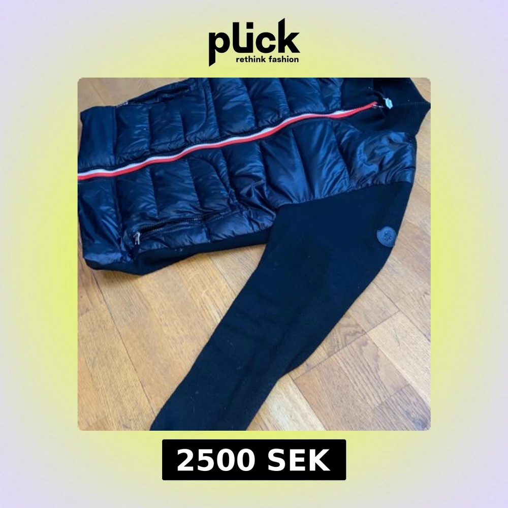 Snygg svart dunväst från Moncler med dragkedja och ribbade detaljer. Perfekt för kyligare dagar med sin quiltade design och stilrena look. Lappen gick av när ja tvättade det är därför ja säljer den så billigt
