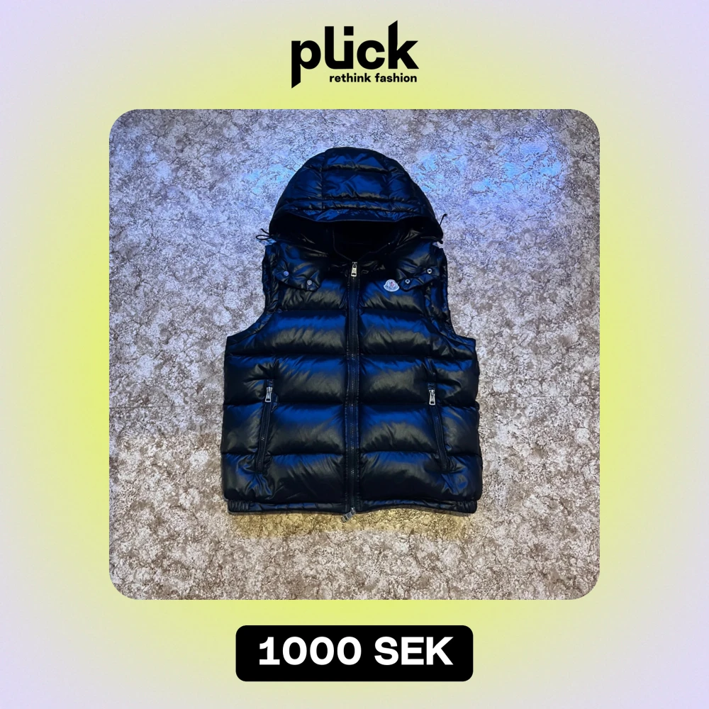 Säljer en snygg svart dunväst från Moncler i mycket bra skick. Västen har en dragkedja framtill och praktiska fickor med dragkedjor. Perfekt för höst och vinter, och den har en cool, quiltad design. Passar både till vardags och lite finare tillfällen. Och den har ett hål i ryggen och en liten hål i fickan som inte syns utanför