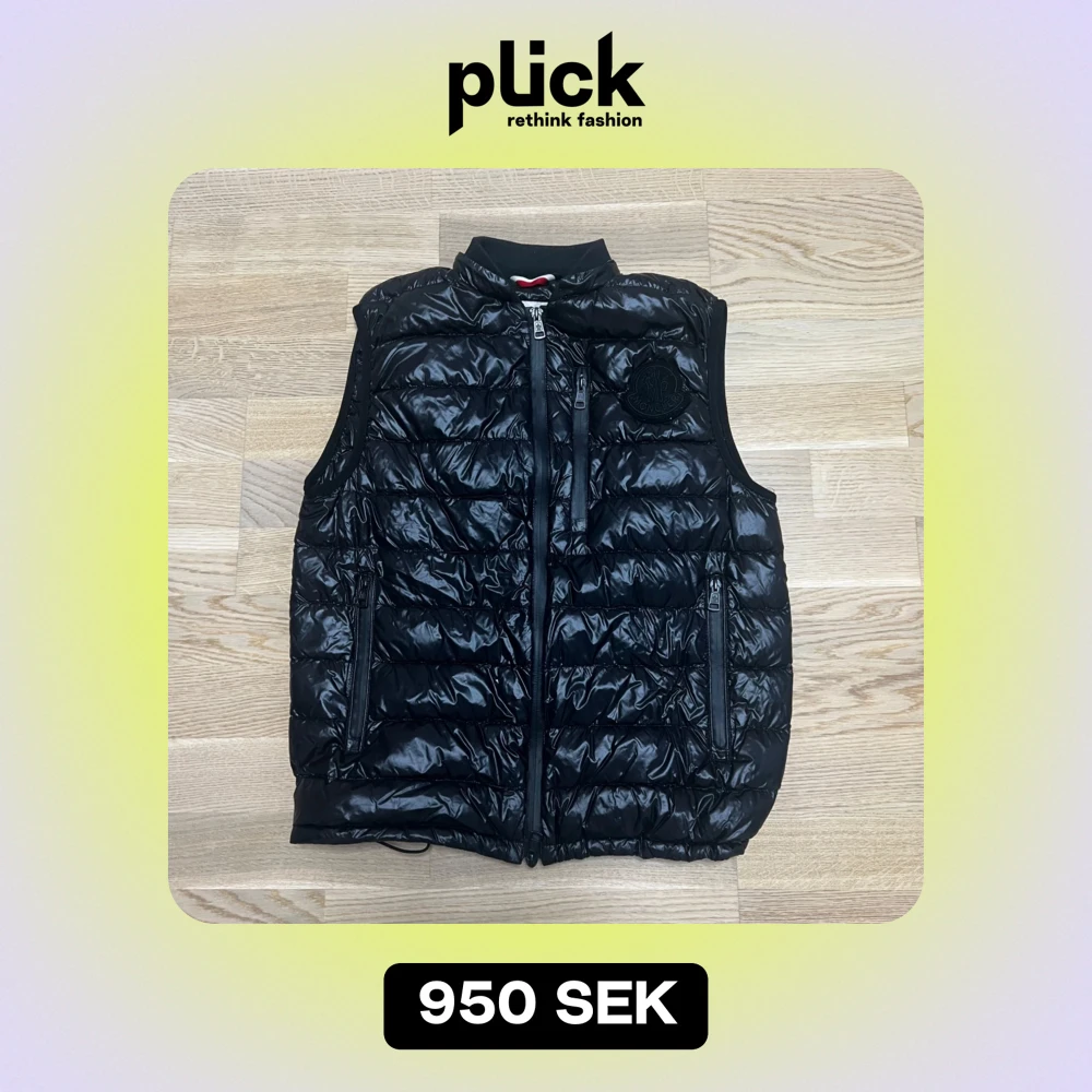 Säljer en snygg svart dunväst från Moncler i mycket bra skick. Västen har en glansig yta med dragkedja framtill och två praktiska fickor med dragkedjor. Perfekt för höst och vår när du vill hålla dig varm och stilren. Moncler-logga på bröstet ger en exklusiv touch. Verkligen top kvalitet och den är äkta, köpte den av en vän fast tyvär har den blivit för liten nu storleken är (S). VÄSTEN SÄLJER JAG FÅR LÅGT PRIS EFTERSOM JAG BEHÖVER PENGAR SNABBT TILL KÖRKORT