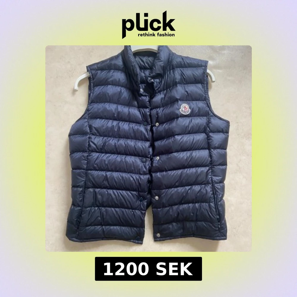 Snygg svart dunväst från Moncler med klassisk quiltad design och hög krage. Västen har tryckknappar framtill och ikonisk Moncler-logga på bröstet. Perfekt att slänga över en hoodie eller tröja för en clean look.