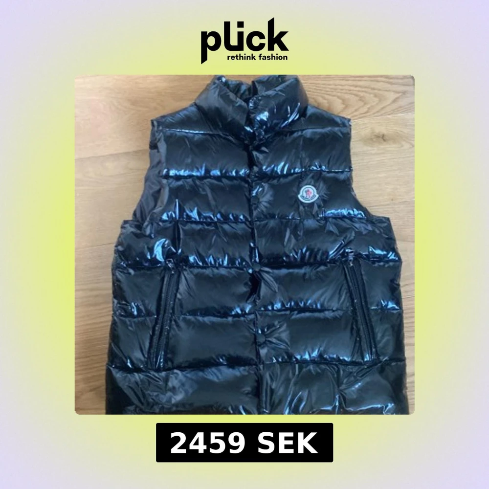 Snygg svart dunväst från Moncler med glansig finish och hög krage. Västen har två praktiska fickor med dragkedja och ikonisk Moncler-logga på bröstet. Perfekt för lager-på-lager och streetstyle. Fodret har en cool serietidningsdetalj. Storlek 1 på västen och it hundra att den är riktig och därav priset.