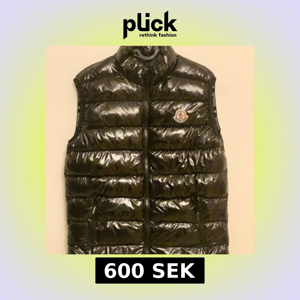 Snygg svart dunväst från Moncler med glansig yta och dragkedja framtill. Västen har en hög krage och Moncler-logga på bröstet. Perfekt för kyliga dagar.