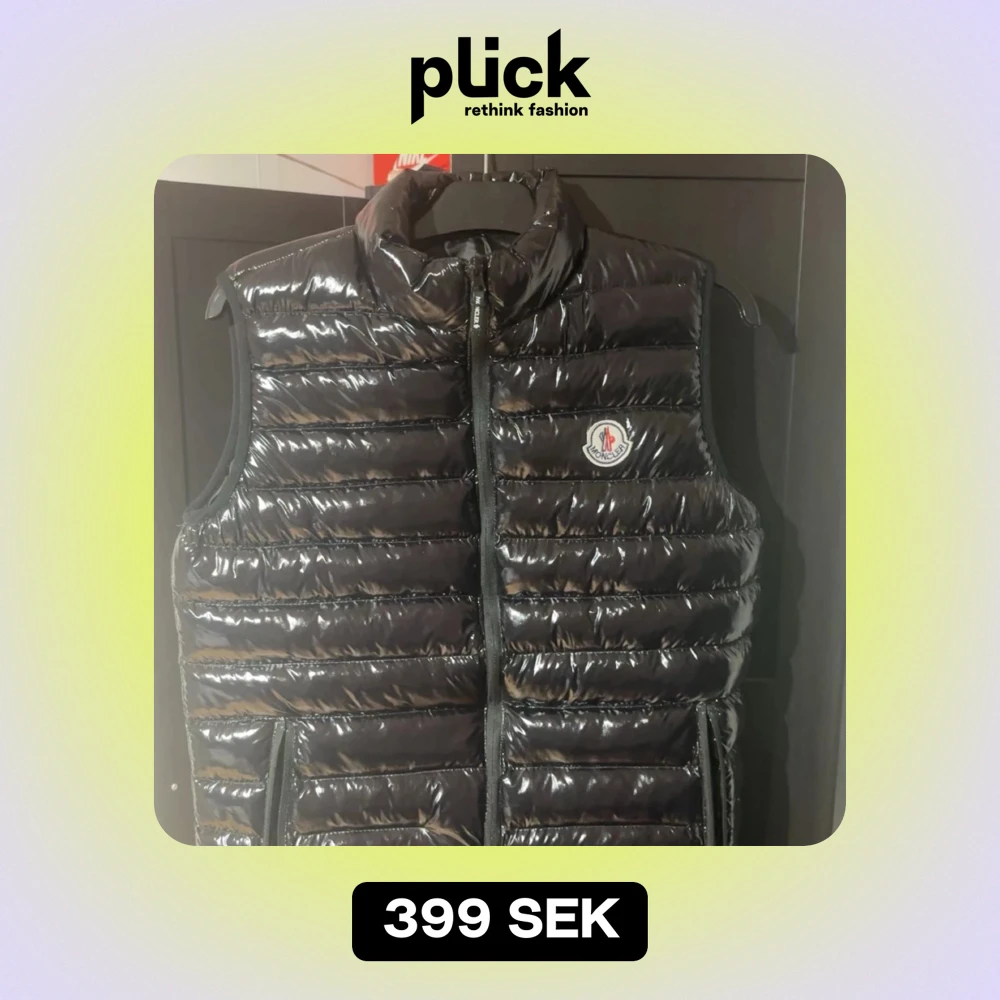 Säljer en snygg och glansig svart dunväst från Moncler. Västen har en dragkedja framtill och ett stilrent märke på bröstet. Perfekt för kyliga dagar när du vill hålla stilen. Passar både till vardags och lite finare tillfällen. 🖤