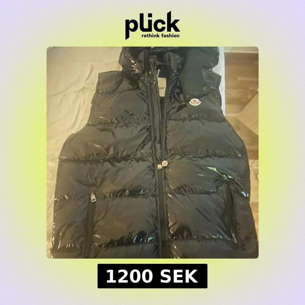 Snygg svart dunväst från Moncler med glansig finish och huva. Västen har dragkedja framtill, två fickor med dragkedja och klassisk Moncler-logga på bröstet. Perfekt för lager-på-lager och håller dig varm under kyliga dagar.
