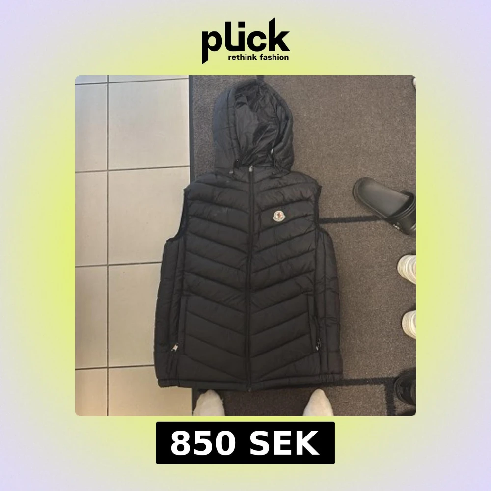 Svart dunväst från Moncler med snyggt quiltad design och huva. Västen har dragkedja framtill, två fickor med dragkedja och Moncler-logga på bröstet. Perfekt för lager-på-lager och streetstyle. Materialet är lätt och värmande, med en clean look.