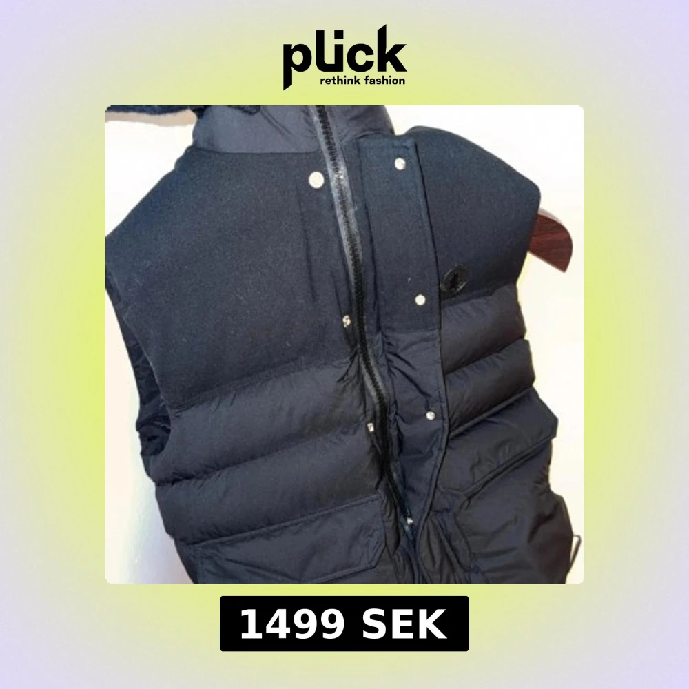 Nu har vi fått in den igen!!! Säljer en stilren svart dunväst från Moncler med dragkedja och knappar framtill. Västen har en hög krage och Moncler-logga på bröstet.