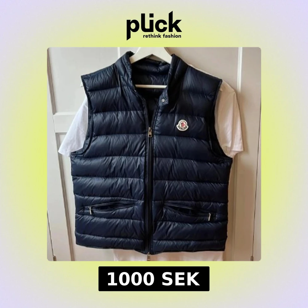 Snygg svart dunväst från Moncler med dragkedja och två praktiska fickor framtill. Perfekt för kyligare dagar och ger en stilren look. Västen har en diskret logga på bröstet.