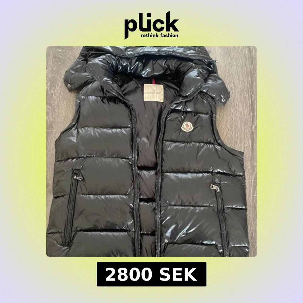 Snygg svart dunväst från Moncler med glansig finish och dragkedja framtill. Västen har två praktiska fickor med dragkedjor och en klassisk Moncler-logga på bröstet. Perfekt för kyliga dagar när du vill hålla stilen.