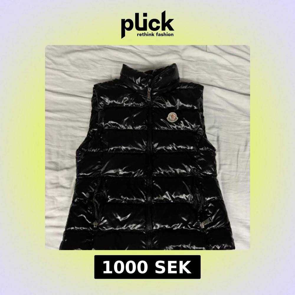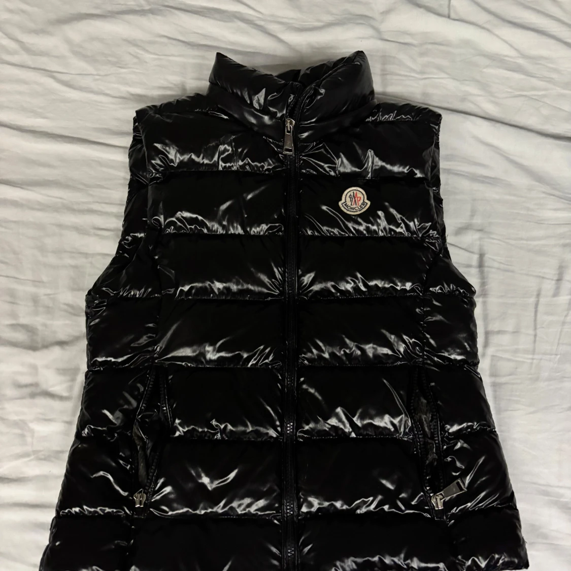 svart dunväst från Moncler med glansig finish. Säljes då den är för liten för mig.