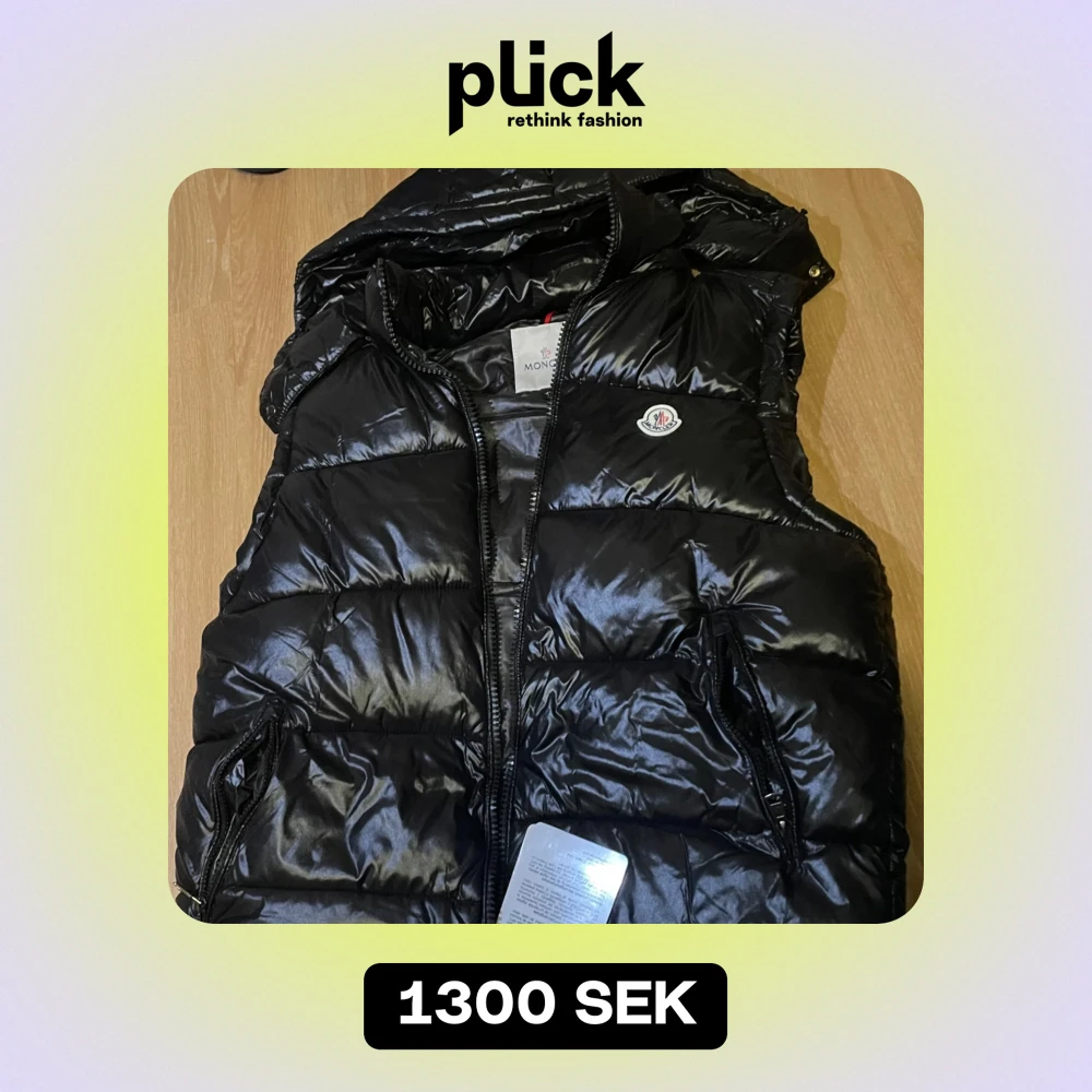 PASSAR SOM M-L!! Säljer en snygg svart dunväst från Moncler i nytt skick. Västen har en glansig yta och är quiltad för extra värme. Den har en dragkedja framtill och praktiska fickor. Perfekt för höst och vinter! 🖤