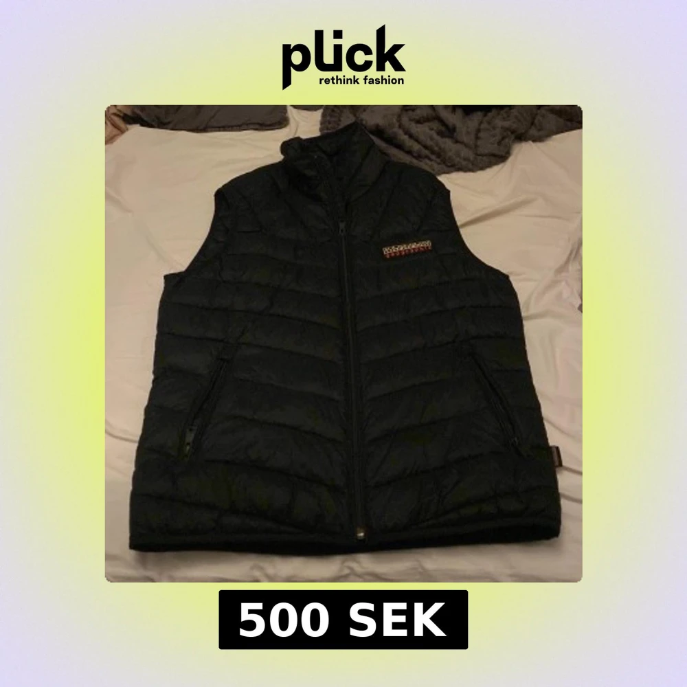 Svart quiltad dunväst från Napapijri med dragkedja framtill och två fickor med dragkedja. Västen har hög krage och en broderad logotyp på bröstet. Tillverkad av minst 70% återvunnet material, perfekt för lager-på-lager-stil. Helt oanvänd
