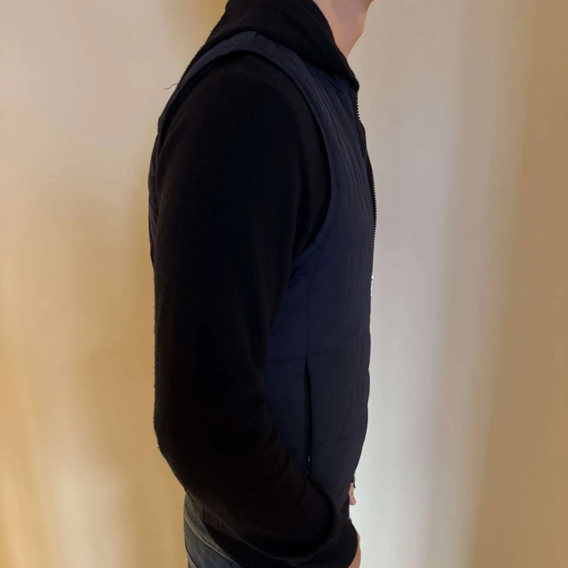 Snygg svart dunväst från Oscar Jacobson med dragkedja framtill. Västen är vindtät, vattenavvisande och andas bra, vilket gör den perfekt för olika väderförhållanden. Den har en stilren design och passar bra över en hoodie eller tröja.Använd ett fåtal gånger 9/10 skick. NYPRIS 1999kr