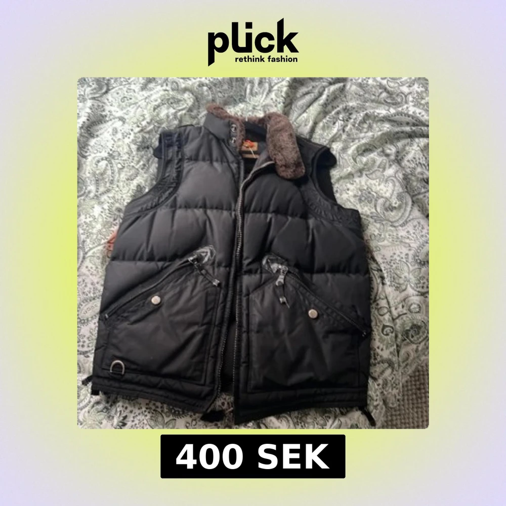 Säljer en svart dunväst från Parajumpers med dragkedja och bruna detaljer. Västen har en quiltad design och är perfekt för kyligare väder. Den har praktiska fickor med dragkedjor och en mjuk krage.