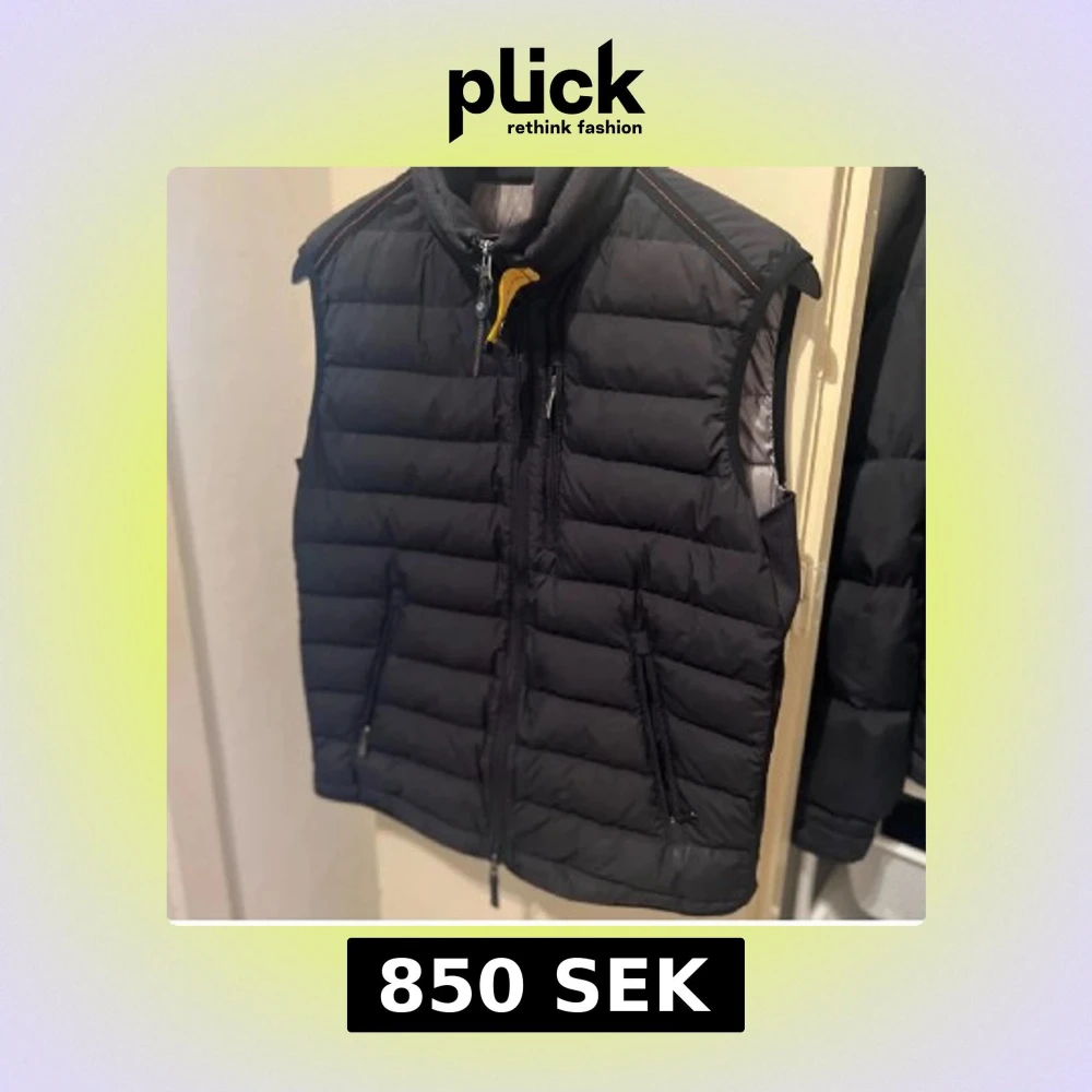 Säljer en svart dunväst från Parajumpers i superlätt design. Västen har dragkedja och är perfekt för lager-på-lager under kyliga dagar. Den har en stilren look med quiltad yta och en liten gul detalj vid kragen