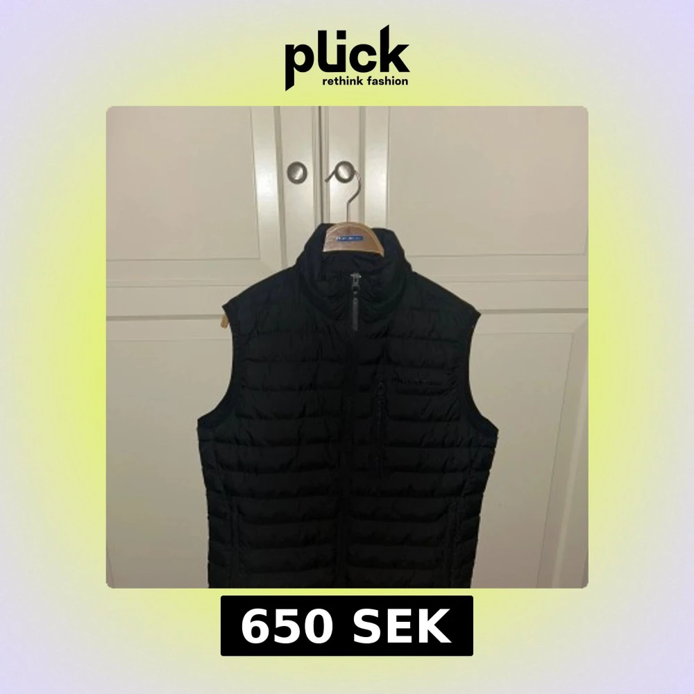 Snygg svart dunväst från Peak Performance med hög krage och dragkedja framtill. Västen har en quiltad design och en bröstficka med dragkedja. Perfekt att slänga över en hoodie eller tröja när det är kyligt ute.