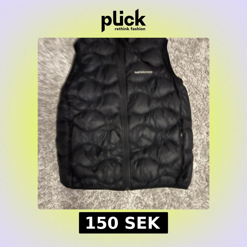 Svart dunväst från Peak Performance med quiltad design och dragkedja framtill. Västen har en stilren look med diskret logga på bröstet och är tillverkad i lätt och smidigt material. Perfekt att slänga över en hoodie eller tröja när det är kyligt ute. Ända är att det är ett igen sytt jack på västen.