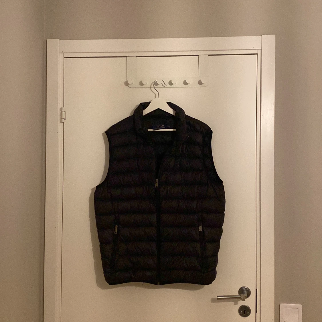 Säljer en snygg svart dunväst från Polo Ralph Lauren. Västen har en dragkedja framtill och är quiltad för extra värme. Perfekt för höst och vår när du vill hålla dig varm men ändå se stilren ut. Den är i nyskick och passar perfekt för både vardag och lite finare tillfällen.