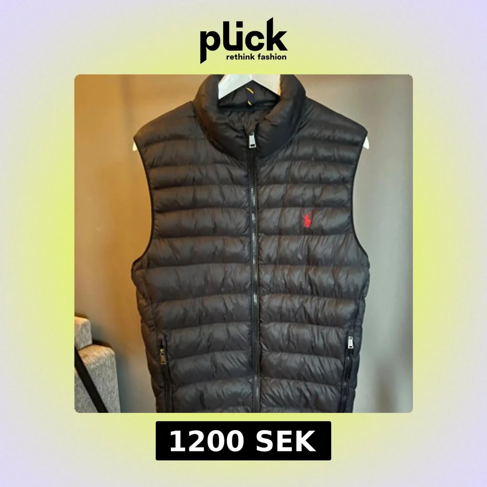 Svart dunväst från Polo Ralph Lauren med horisontella quiltade sömmar och röd logobroderi på bröstet. Västen har hög krage, två fickor med dragkedja och hel dragkedja framtill. Perfekt för lager-på-lager under kyliga dagar.