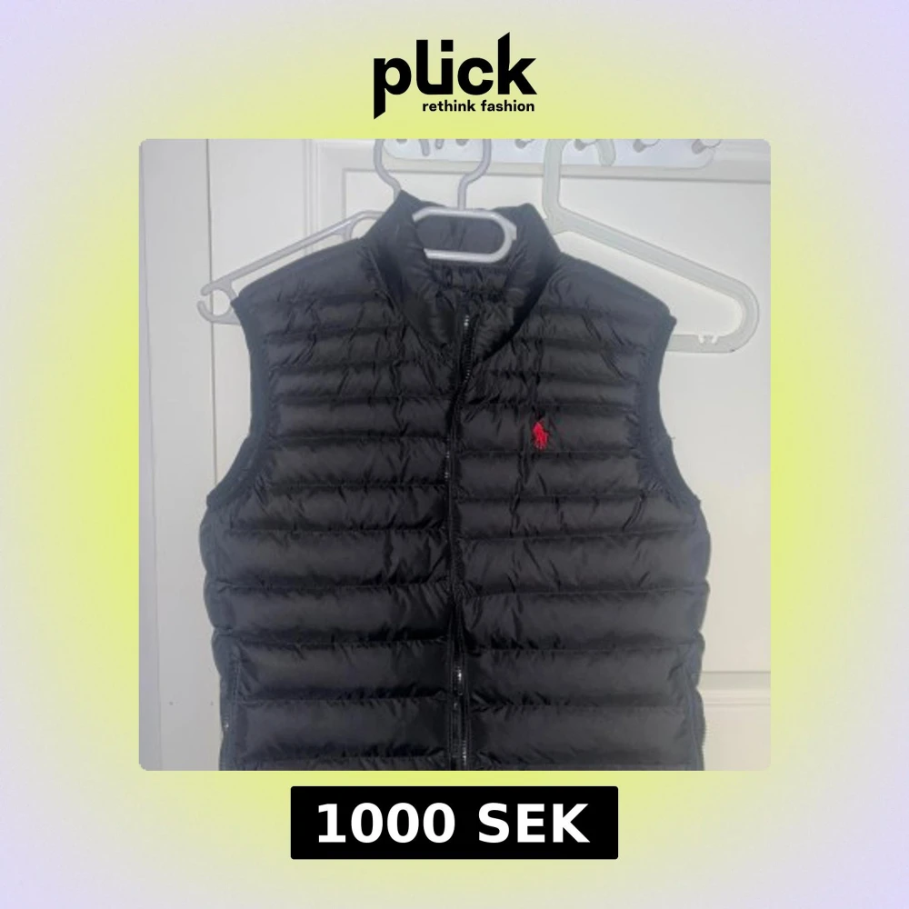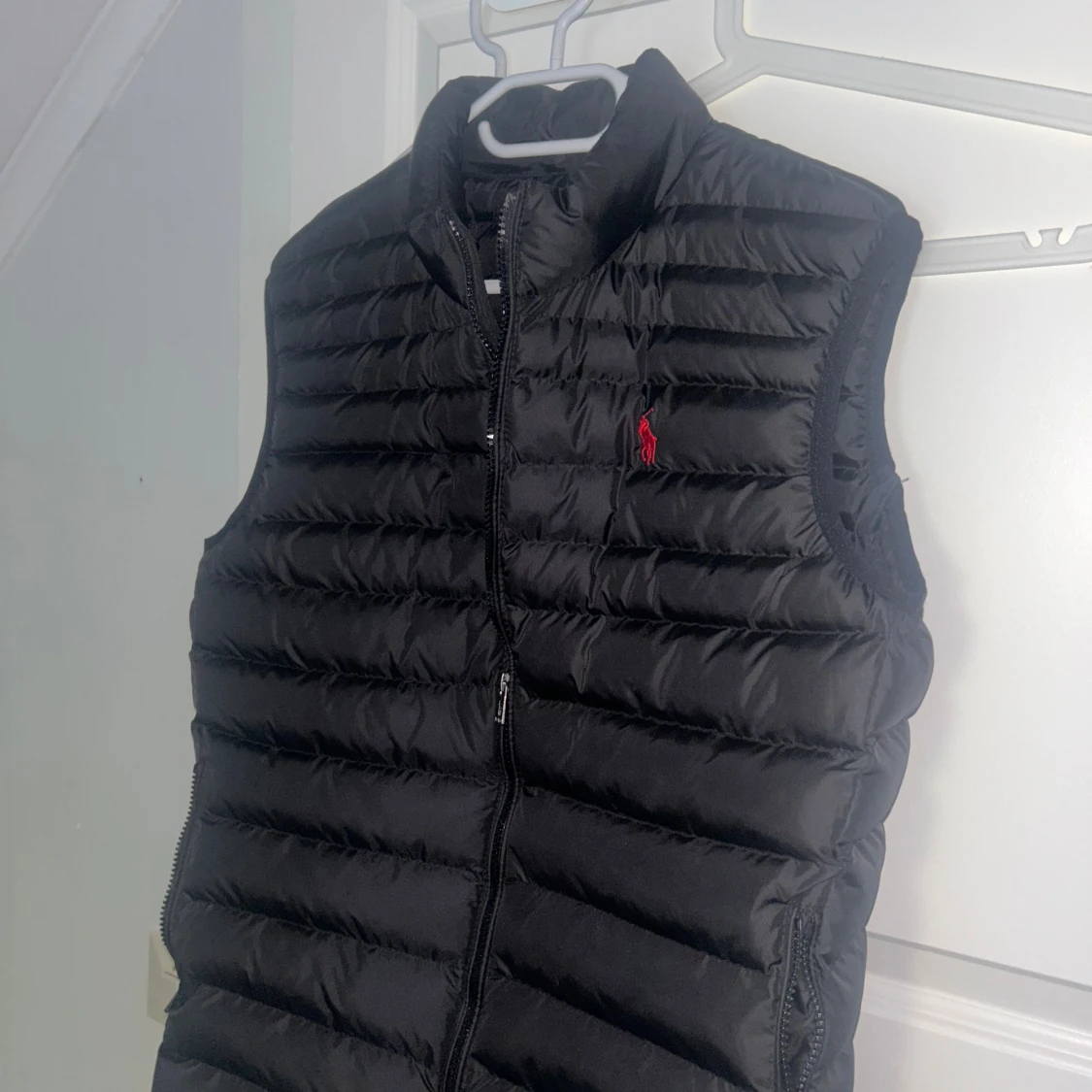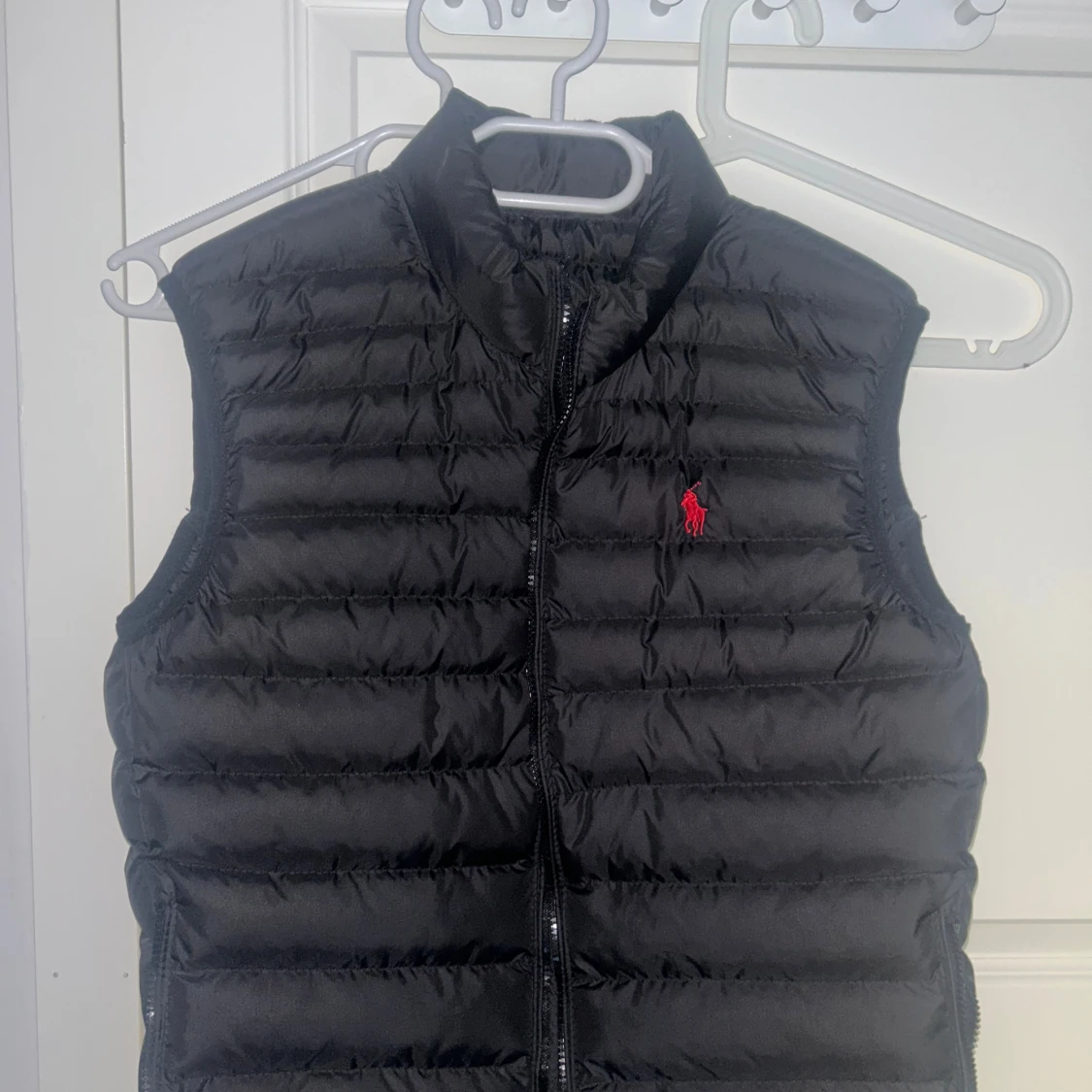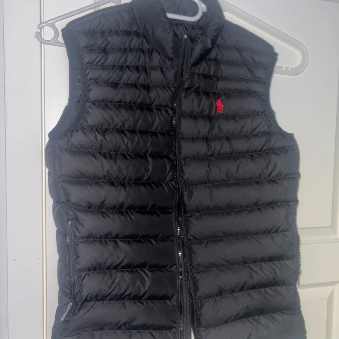 Svart quiltad dunväst från Ralph Lauren med klassisk röd logga på bröstet. .