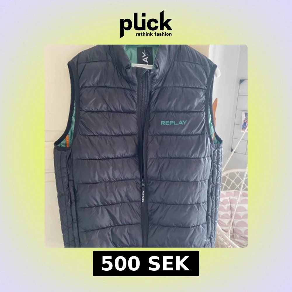 Snygg svart dunväst från Replay med dragkedja framtill. Västen har en stilren design med Replay-logga på bröstet och en kontrasterande grön insida. Perfekt för lager-på-lager under kyligare dagar.