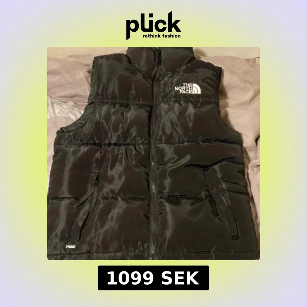 Svart dunväst från The North Face med hög krage, dragkedja framtill och två fickor med dragkedja. Klassisk logga på bröstet och 700-brodyr vid nederkanten. Perfekt för lager-på-lager och streetwear.