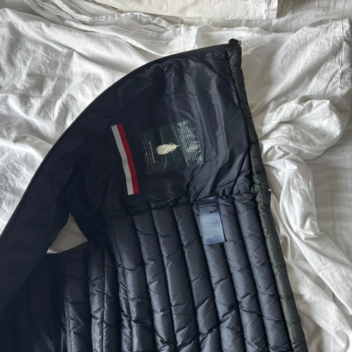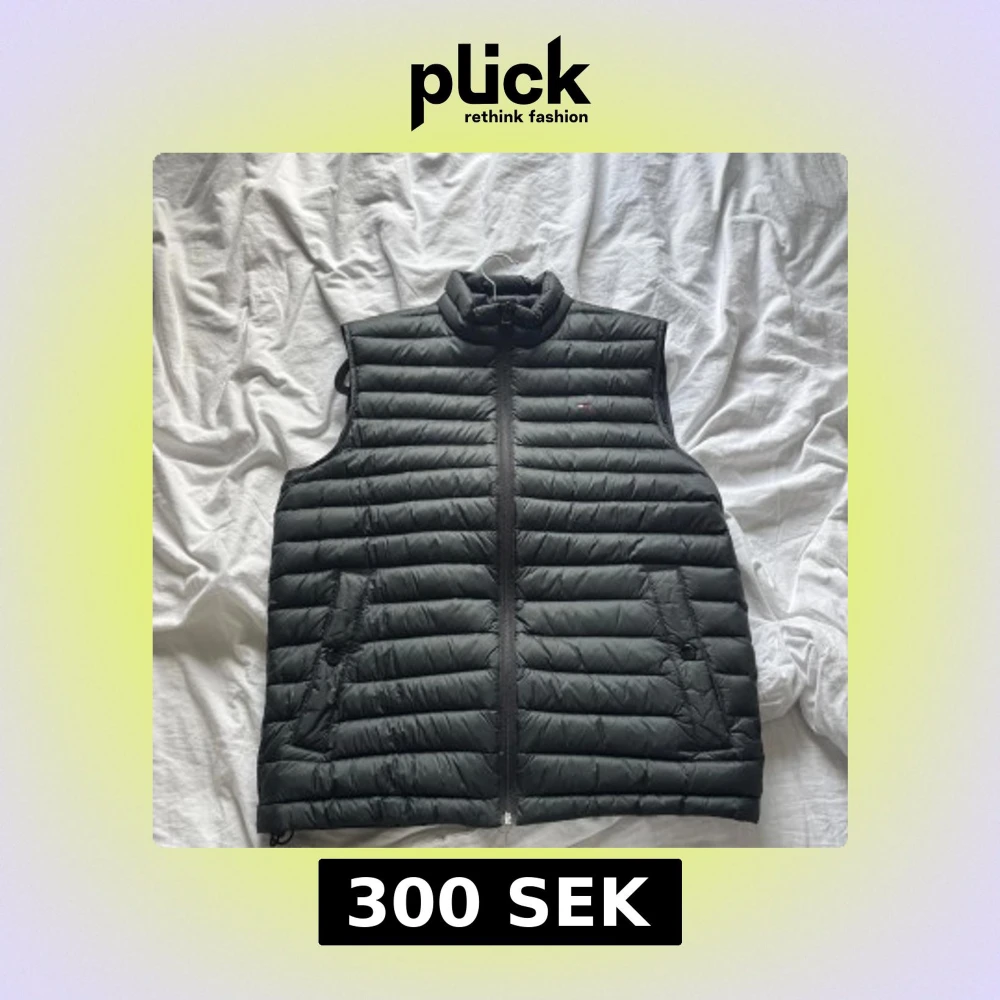 Snygg svart dunväst från Tommy Hilfiger med horisontella sömmar och dragkedja framtill. Västen har ståkrage och två fickor med och enkel att matcha.