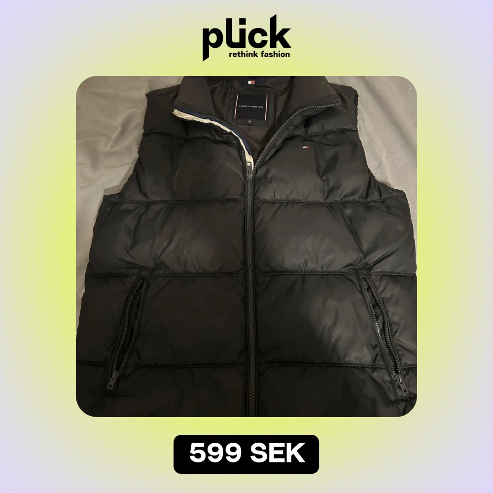 Säljer en snygg svart dunväst från Tommy Hilfiger i mycket bra skick. Västen har en dragkedja framtill och två fickor med dragkedjor.