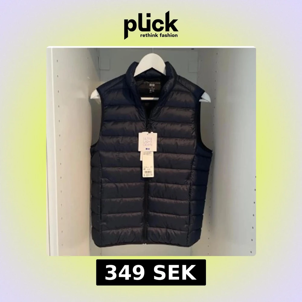 Snygg och lätt svart dunväst från Uniqlo med dragkedja framtill. Helt ny med prislappen på. Nypris 599kr, mitt pris 349. Vid frågor är det bara att höra av sig!