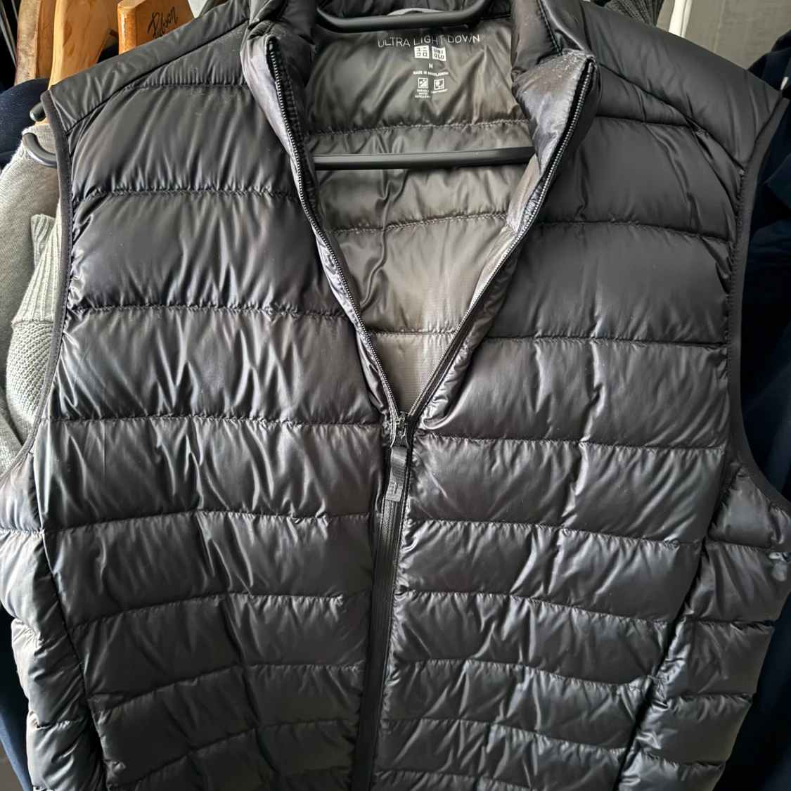 Säljer en svart, quiltad dunväst från Uniqlo Ultra Light Down. Västen har dragkedja framtill och är lätt och smidig att bära. Perfekt för lager-på-lager under kyliga dagar. (Nästintill oanvänd, därav inga defekter! Passade inte så säljer den.)