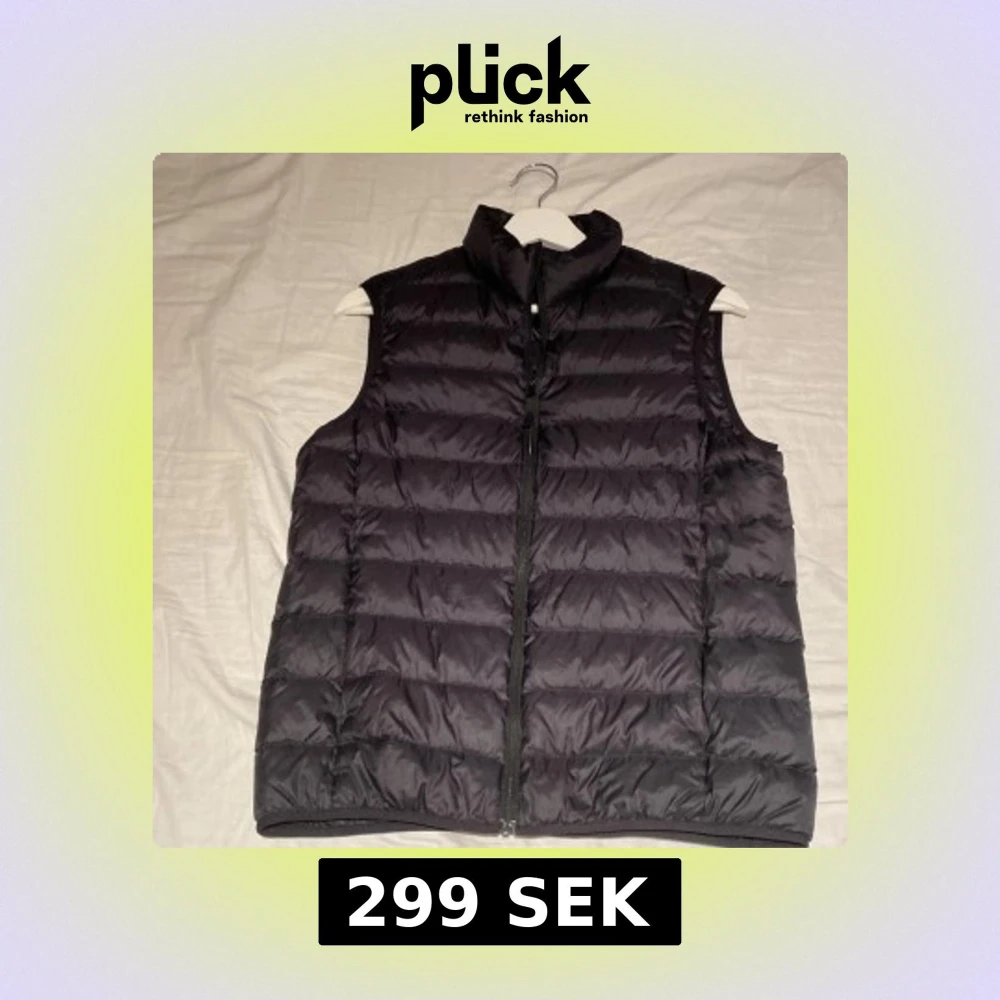 Svart, ultralätt dunväst från Uniqlo i storlek XS. Västen har quiltad design, hög krage och hel dragkedja framtill. Perfekt för lager-på-lager och enkel att bära med sig. Klassisk och stilren look.