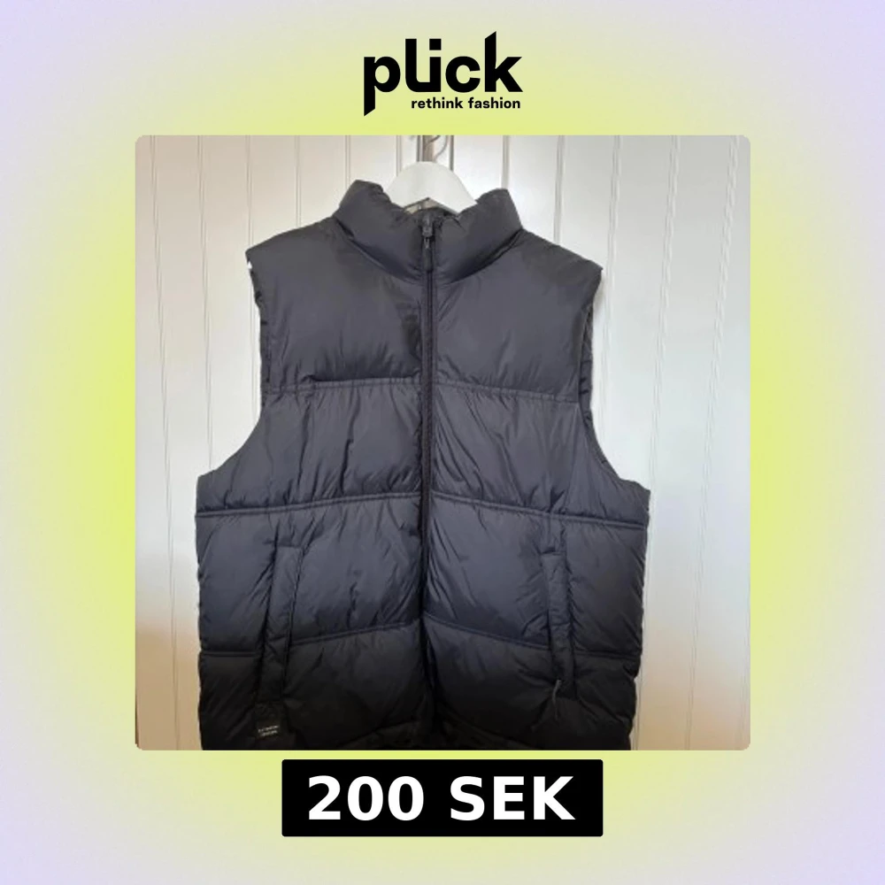Säljer en svart dunväst från Zara med hög krage och dragkedja framtill. Västen har två fickor med dragkedja och en stilren, quiltad design. Perfekt för lager-på-lager under kyliga dagar. Sparsamt använd.