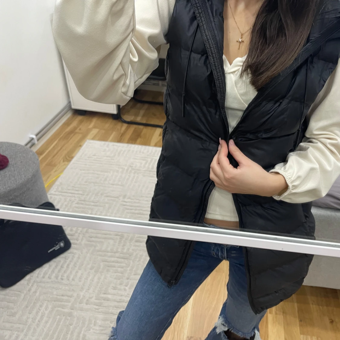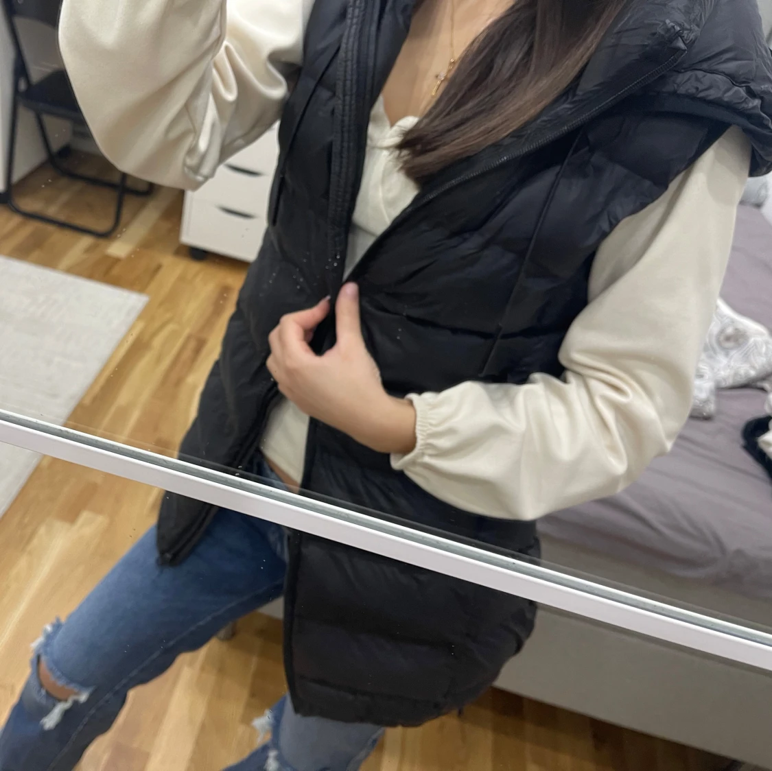 Snygg svart dunväst med dragkedja, perfekt för kyligare dagar. Västen har en normal passform och är ett stilrent tillskott till garderoben.