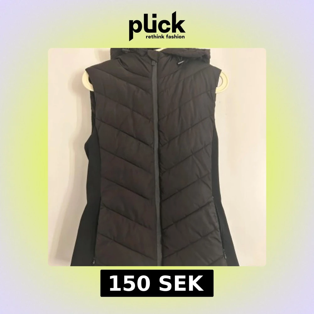 Snygg svart dunväst från Zara med dragkedja och huva. Perfekt för kyliga dagar när du vill hålla värmen utan att kompromissa med stilen. Västen har en quiltad design som ger en modern look.