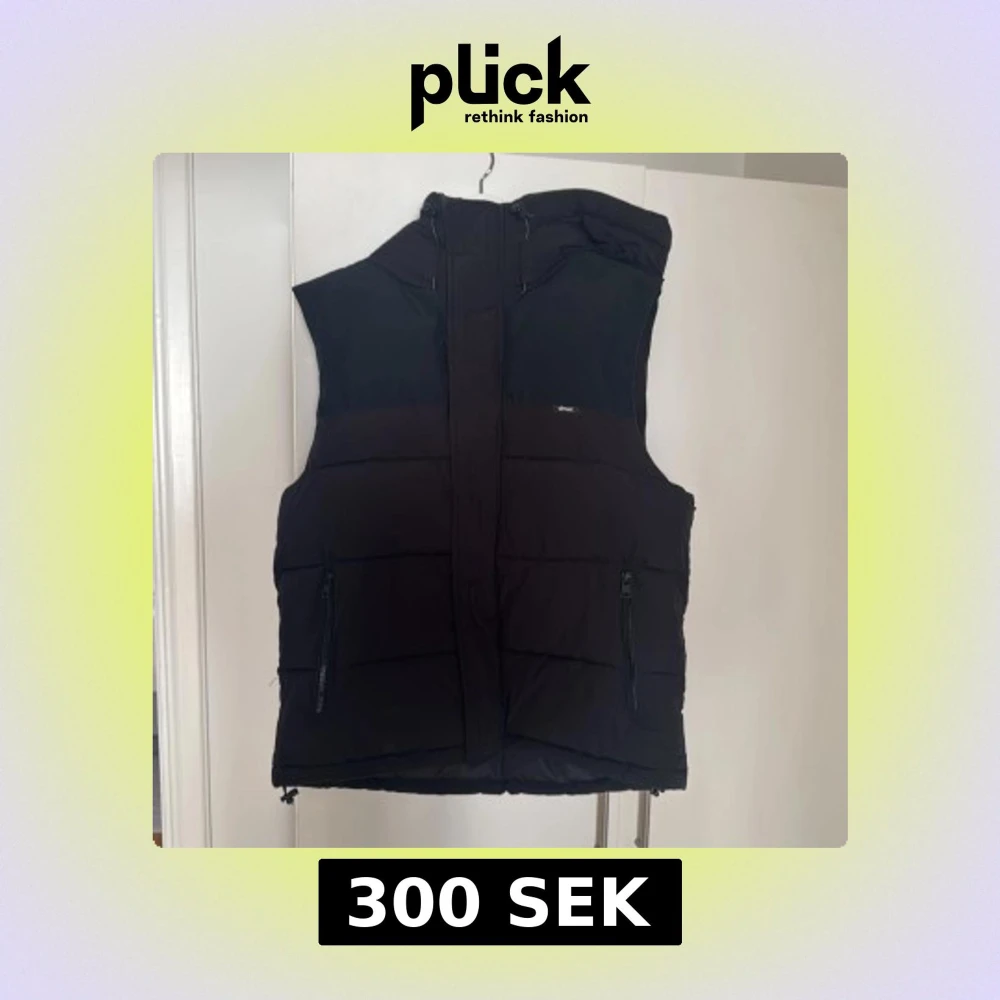 Säljer en svart dunväst från Zara med dragkedja och huva. Västen har en stilren design med två praktiska fickor framtill. Perfekt för kyligare dagar.
