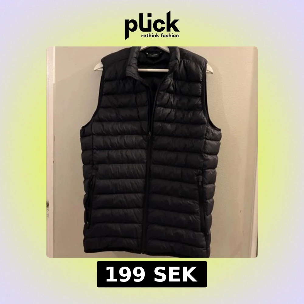 Svart dunväst med dragkedja