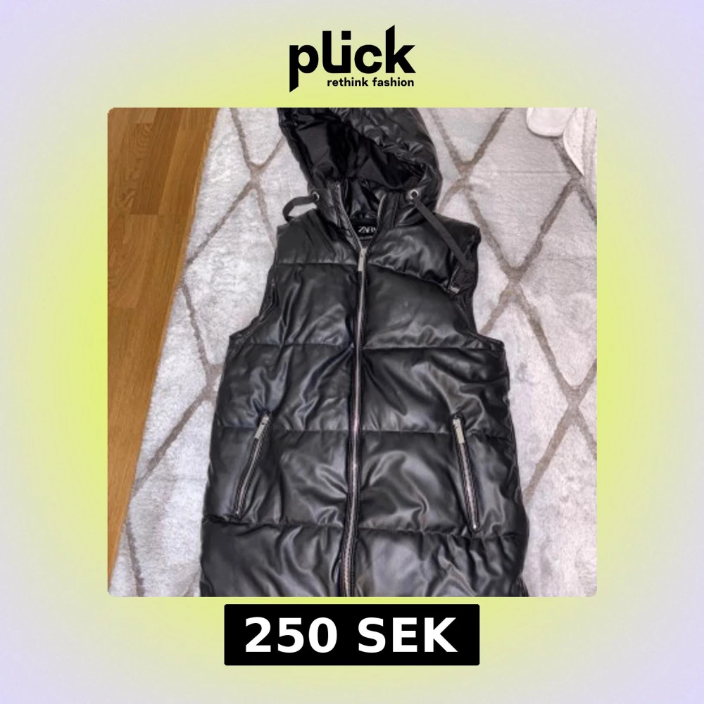 Snygg svart dunväst från Zara med dragkedja och huva. Perfekt för kyliga dagar när du vill hålla stilen. Västen har praktiska fickor med dragkedjor.