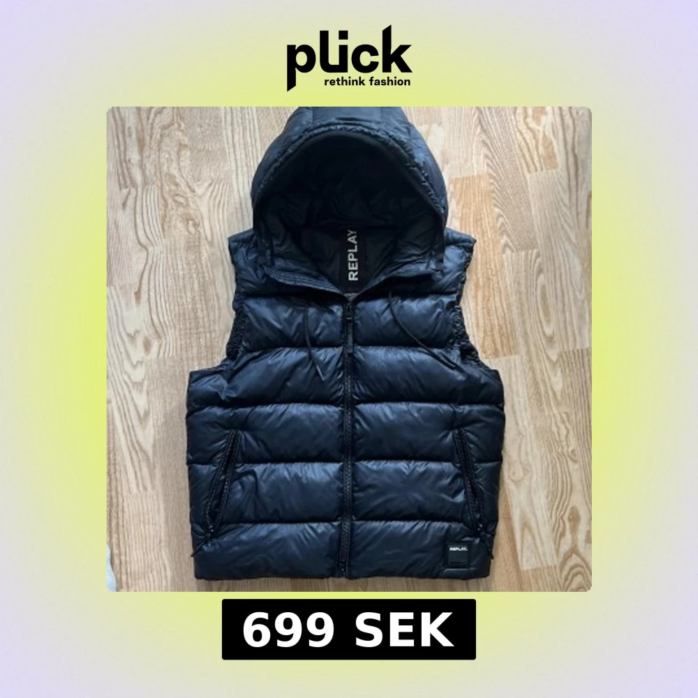 Svart dunväst från Replay med huva och dragkedja framtill. Västen har två fickor med dragkedja och en quiltad design som ger en cool och sportig look. Perfekt för lager-på-lager och funkar till många outfits.