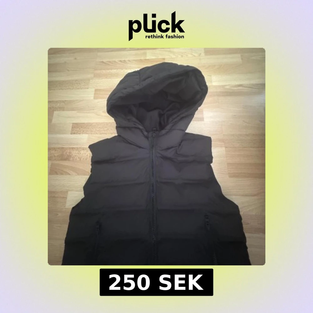 Säljer en svart dunväst från Zara i storlek 164. Västen har en stor, mysig huva och två fickor med dragkedja framtill. Quiltad design med breda kanaler och hel dragkedja. Perfekt att slänga över en hoodie för extra värme. Använd en gång. Storlek 164, men passar xs/s också. Längd 70cm, bröst 104cm.