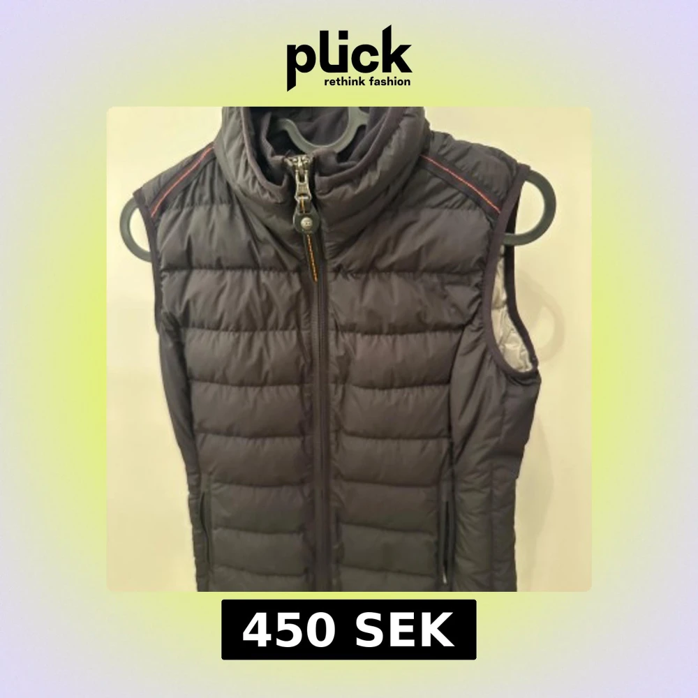 Snygg svart dunväst från Parajumpers i superlätt material. Västen har hög krage, dragkedja framtill och diskreta röda detaljer vid axlarna. Perfekt för lager-på-lager och har en sportig vibe med quiltad design och praktiska fickor.