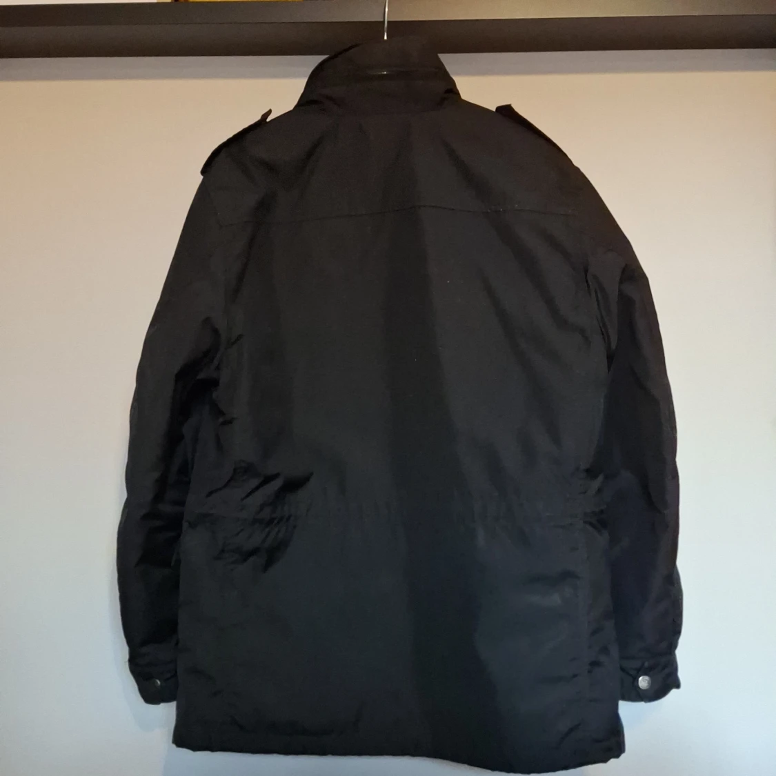 Säljer en stilren svart jacka från C.P. Company. Jackan har långa ärmar och flera praktiska fickor framtill. Den är perfekt för kyligare dagar och har en klassisk design med dragkedja och knappar.