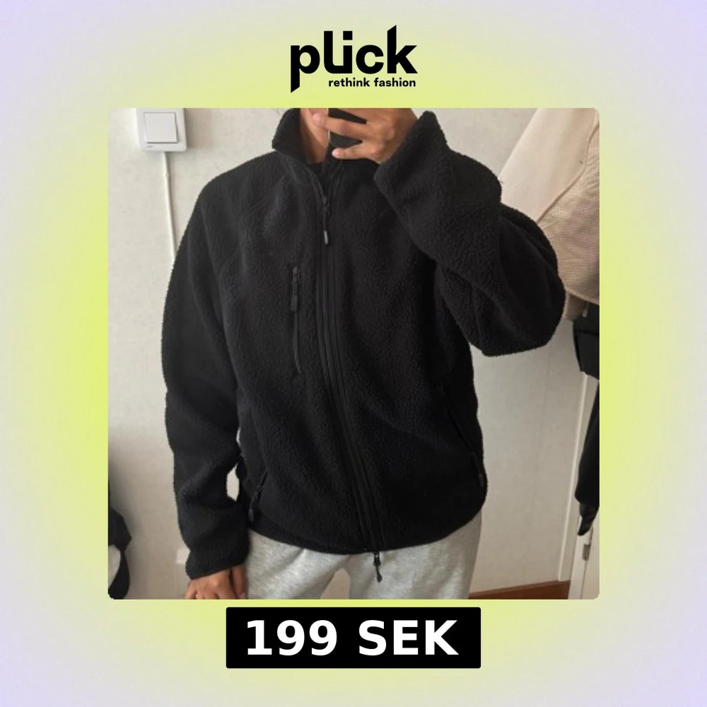 Mysig svart teddyjacka i fleece med hög krage och hel dragkedja framtill. Jackan har tre praktiska fickor med dragkedja och en loose passform som ger en chill vibe. Perfekt för kalla dagar när du vill vara både bekväm och snygg.