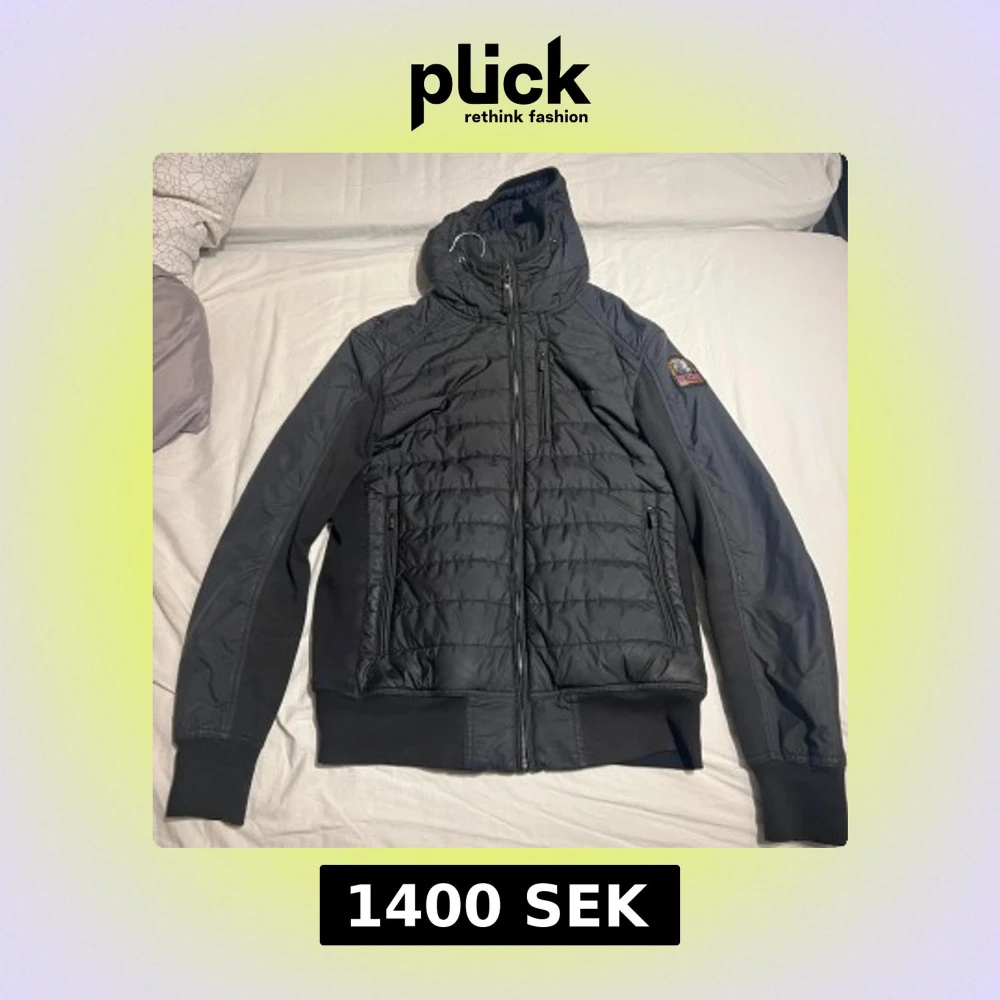 DEN ÄR ÄKTA!! Säljer en svart fleecejacka från Parajumpers med huva och dragkedja. Jackan har ett broderat märke på ärmen och ribbade muddar. Perfekt för inte kalla men inte varma dagar.