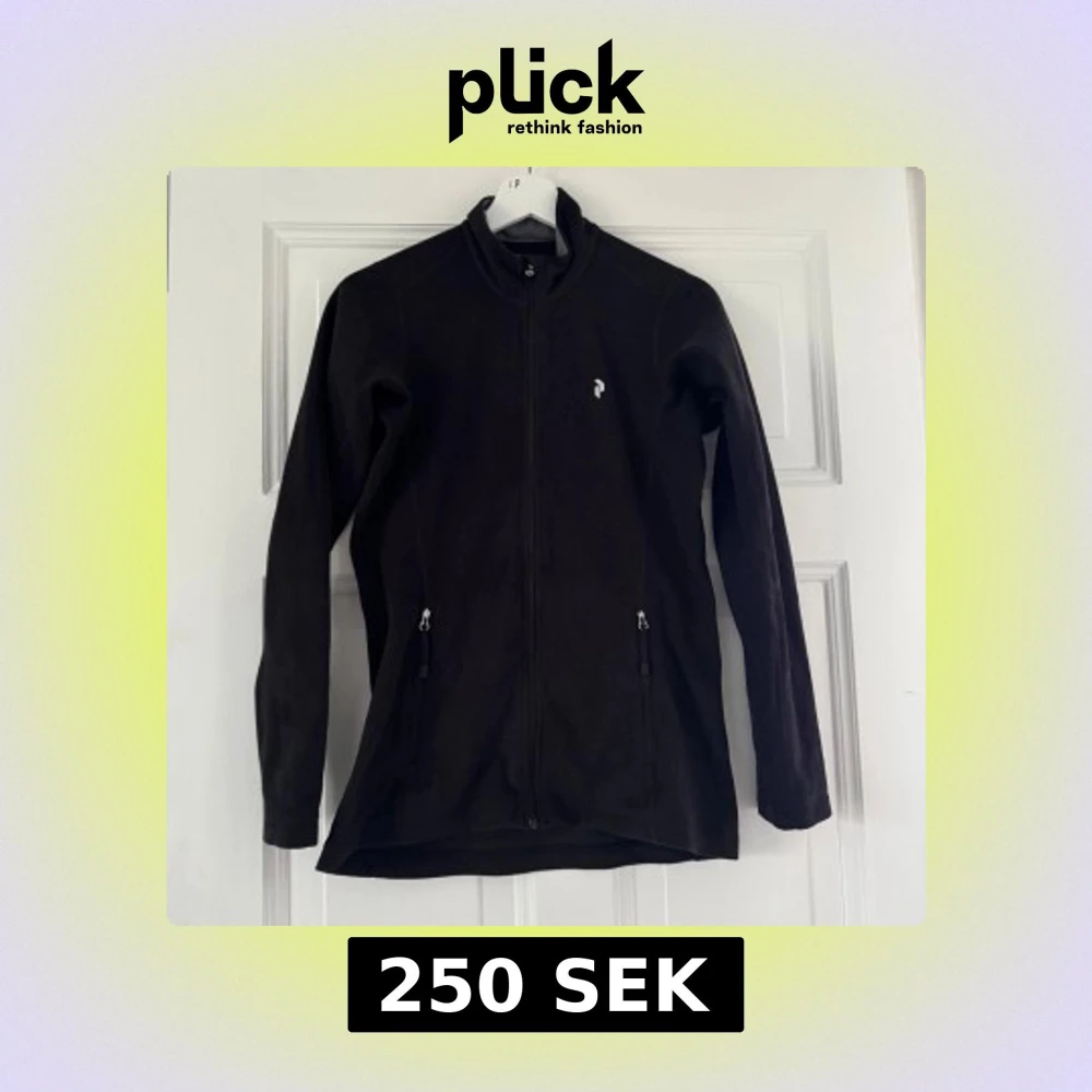 Svart fleecejacka från Peak Performance med hel dragkedja framtill och två fickor med dragkedja. Storlek S, Aldrig använd.