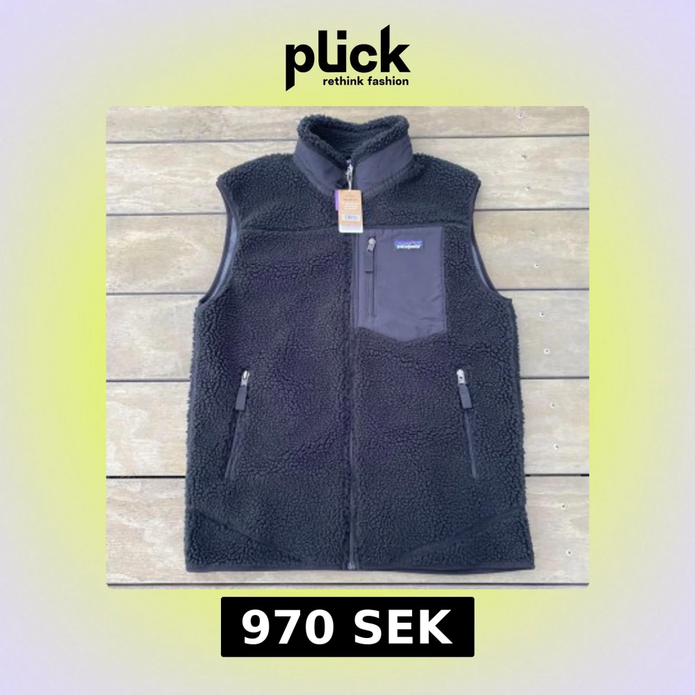 Mysig svart fleeceväst från Patagonia med hög krage och hel dragkedja. Västen har tre fickor med dragkedja, varav en bröstficka med logga. Perfekt för lager-på-lager och outdoor. Snygg, enkel design med mjukt teddyfoder.