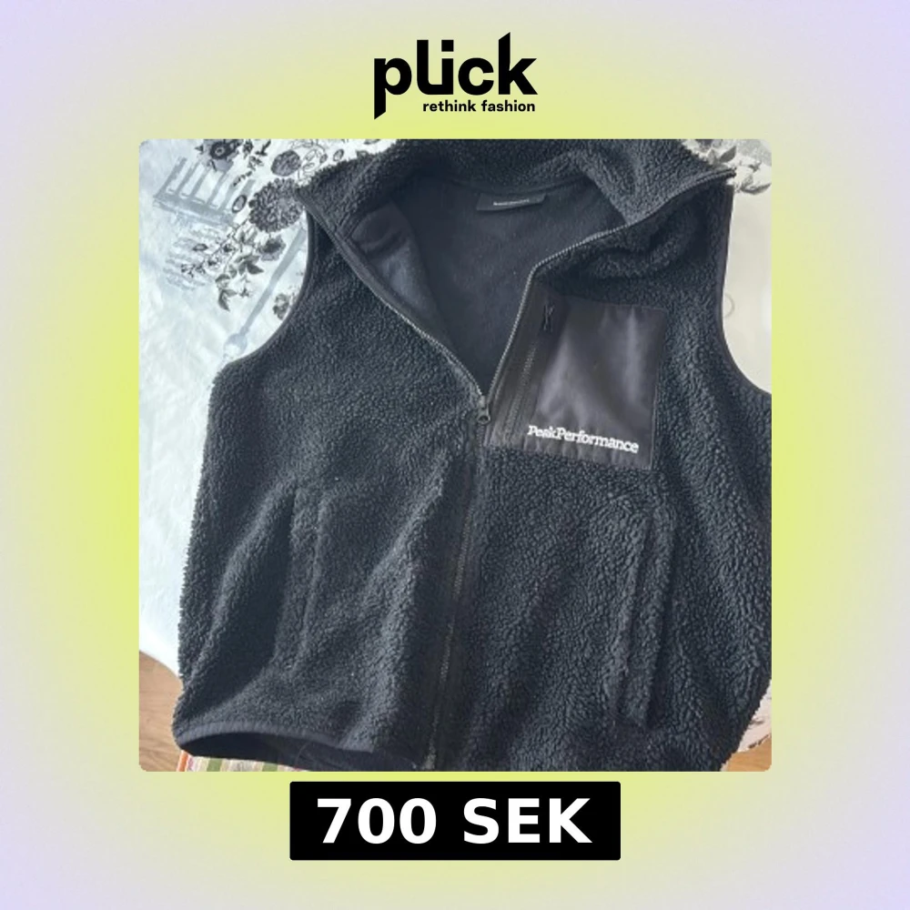 Säljer en svart fleeceväst från Peak Performance. Västen har en dragkedja framtill och en praktisk bröstficka med dragkedja. Perfekt för kyliga dagar.
