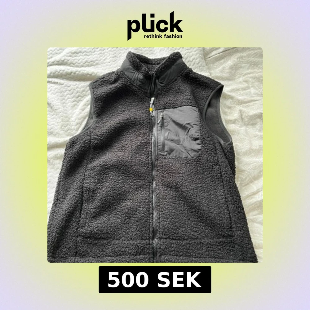 Säljer en svart fleeceväst med hög krage och hel dragkedja framtill. Västen har en praktisk bröstficka i syntetmaterial med dragkedja. Perfekt för lager-på-lager under kyliga dagar. Priset är inte hugget i sten!