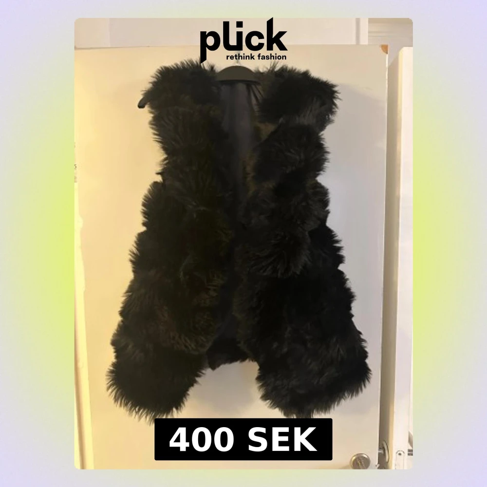 Säljer en svart pälsväst med riktigt fluffig och mjuk känsla. Västen har en voluminös look och är helsvart utan synliga detaljer eller mönster. Perfekt för dig som vill ha en statement piece med extra mycket attityd och värme.