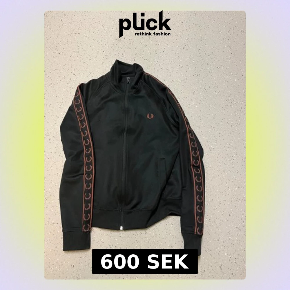 Svart sip/hoodi från Fred Perry i storlek S. Sipen har röda detaljer längs ärmarna med Fred Perry-loggor, hel dragkedja framtill och ribbade muddar. Materialet är mjukt och syntetiskt, perfekt för en sportig och clean look.